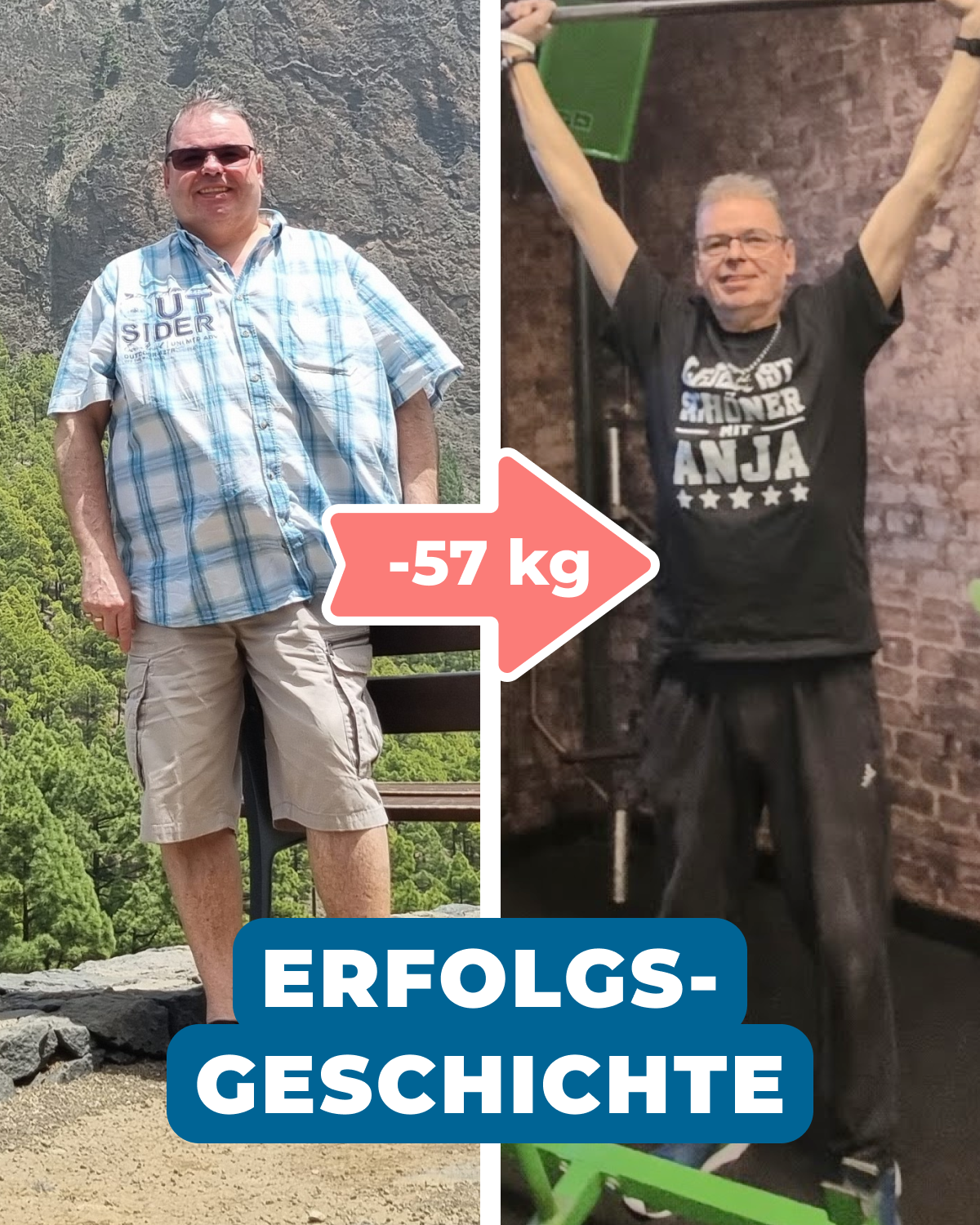 Auch für Anja stand die Gesundheit im Mittelpunkt. Sie wollte abnehmen, weil sie unter Adipositas litt und starke Knie- sowie Rückenbeschwerden hatte. Als im Januar 2024 eine Arthroskopie an ihrem Knie durchgeführt werden musste, war ihr Wunsch klar: schmerzfreier zu werden, sich wieder besser bewegen zu können und gemeinsam mit ihrem Mann gesünder zu leben.